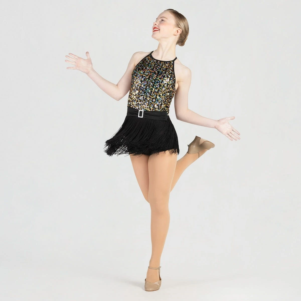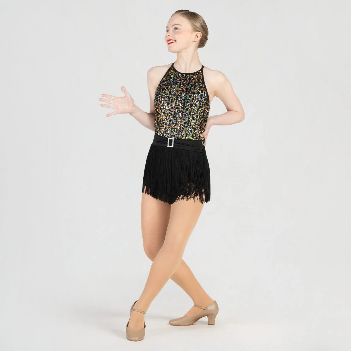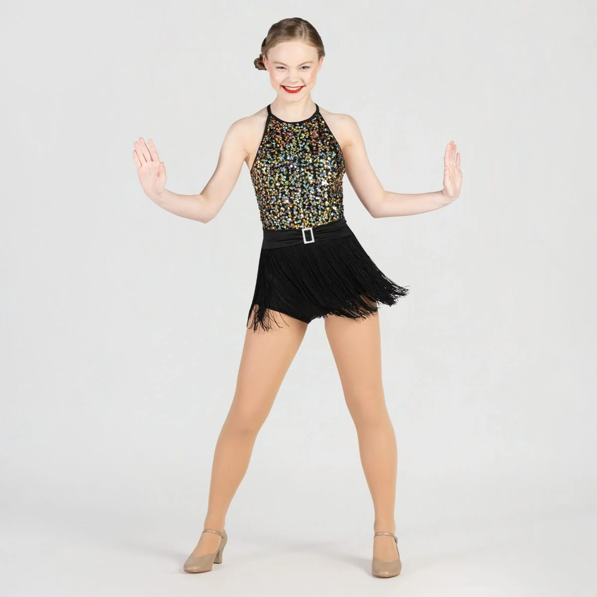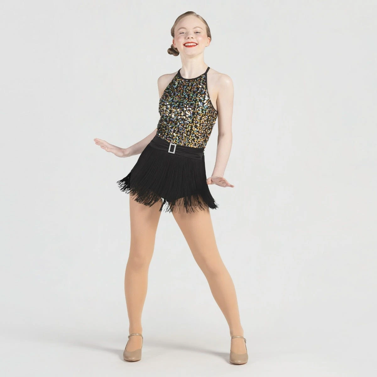 * Faites briller votre numéro dans cet académique à paillettes et jupe à franges