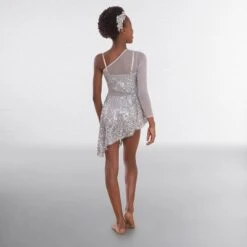 * Combi-short lyrique à paillettes asymétriques 1st Position avec corsage et jupe en maille grise