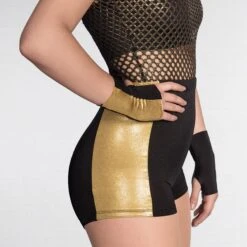 * Short taille haute avec bandes métalliques couleur or sur les côtés