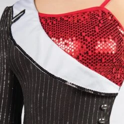 1st Position Justaucorps Asymétrique à Rayures Paillettées Avec Jupette à Franges