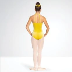 Le justaucorps en velours appliqué or souligne le prestige de la danseuse