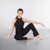 Combinaison pantalon à col ras du cou, du velours sur le devant et dos goutte. Idéale comme tenue de danse, cette combinaison pantalon aura fière allure sur scène dans n`importe quel spectacle.