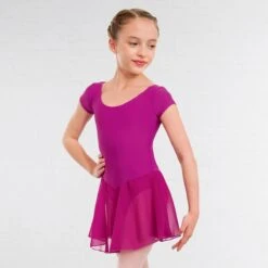 1st Position « Milly » Justaucorps à Manches Très Courtes Avec Jupette Intégrée En Voile