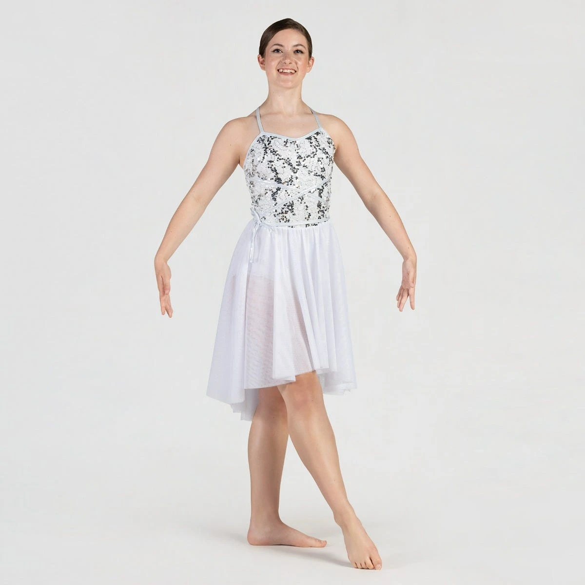1st Position Robe Lyrique Brillant Courte Devant/Longue Derrière à Dos Croisé