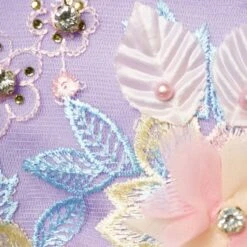 - Des épaisseurs de tulle avec une couche supérieure ornée d’appliques de fleurs
