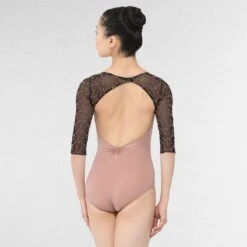 Add flair and sophistication to your performance in this high quality fashionable leotard from Ballet Rosa. Embroidered mesh sleeves effortlessly balance the open back and the microfibre bodice adds an attractive contrast.