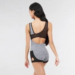Look and feel great during exercise in this dance active cut out tank leotard from Capezio. Stand out features include asymmetrical front and back yokes and stylised, cross body seams which accentuate the narrowest part of the waist. Shelf bra with built-in cups adds extra support and the cut-out details boost breathability.
