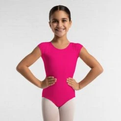 Justaucorps classique à manches courtes pour filles, parfait pour la classe, en tissu luxueux Tactel®.