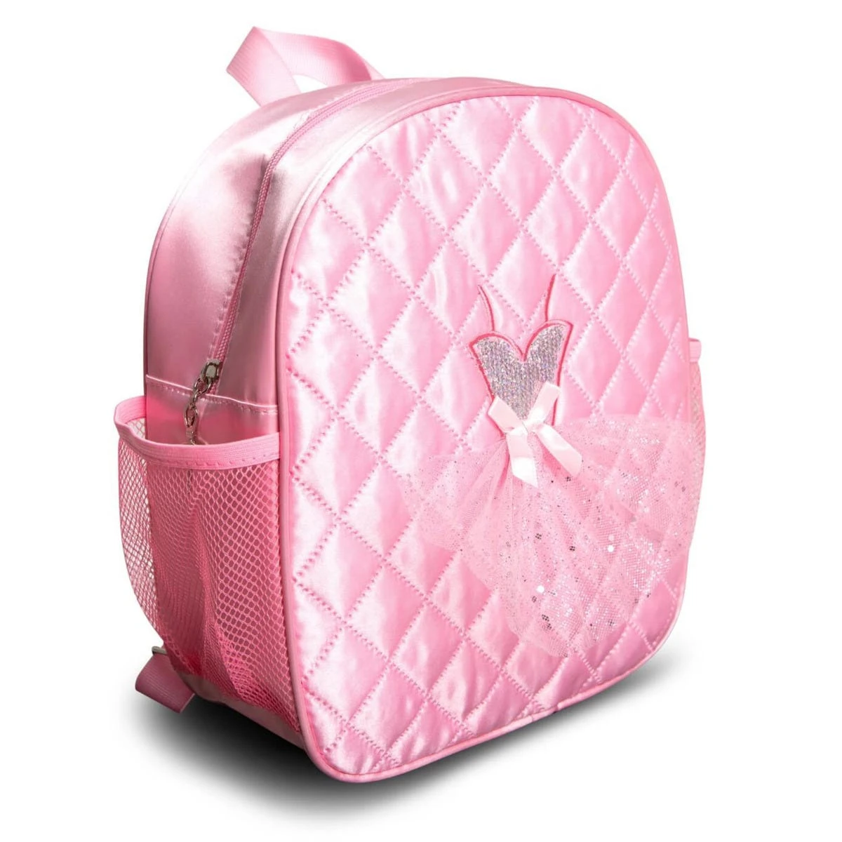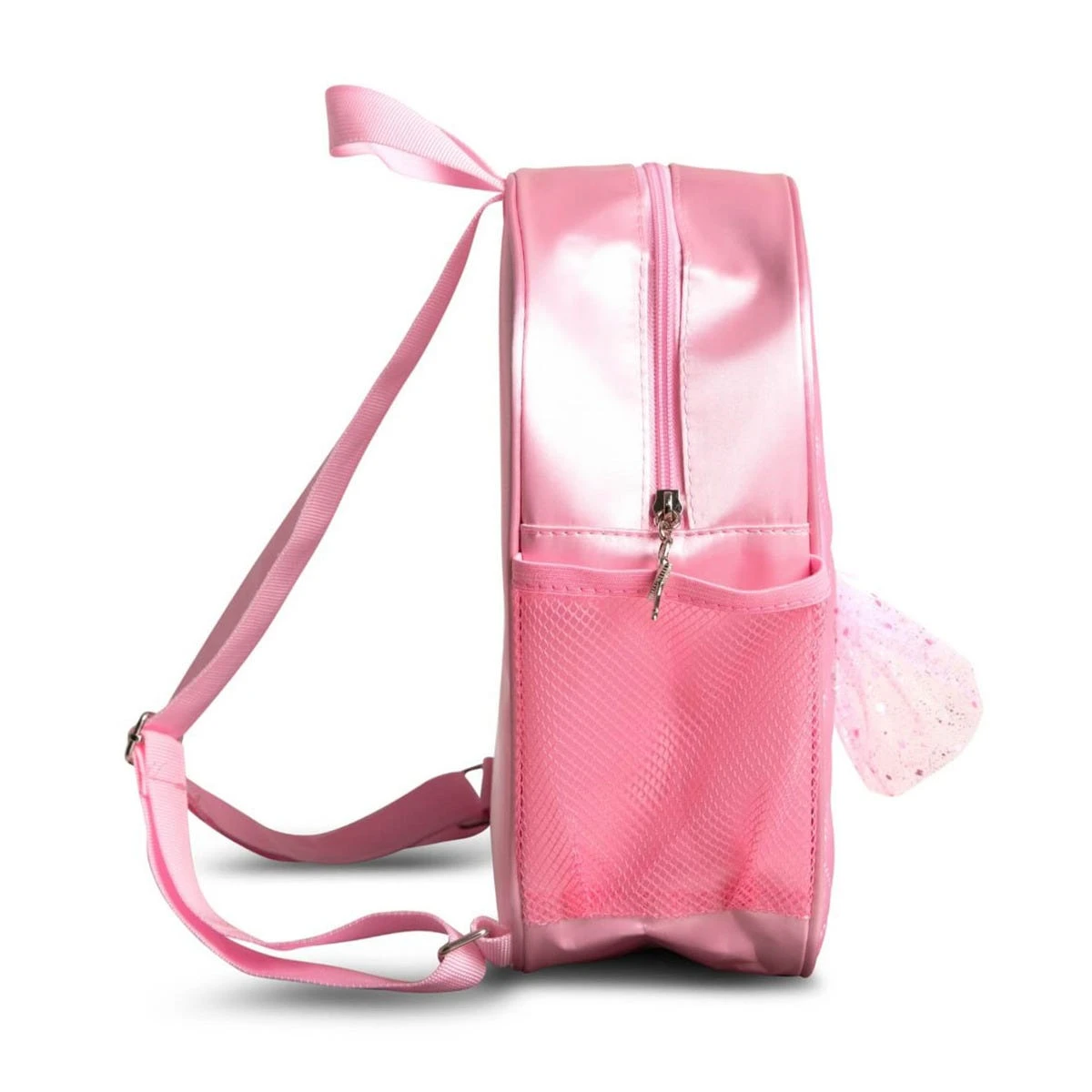 Le sac à dos à paillettes Capezio, qui comporte un magnifique tutu de tulle à paillettes en 3D, est tout de rose vêtu