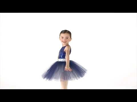 Justaucorps en élasthanne avec corsage entiÚrement doublé de sequins sur la poitrine, empiÚcement en voile, découpe ronde dans le dos et fermeture par crochets au cou. La ceinture en dentelle extensible comporte une fleur attachée avec des rubans de satin sur la hanche droite. La jupe attachée est constituée d`une superposition de plusieurs couches de tulle sur deux couches de tulle ivoire.