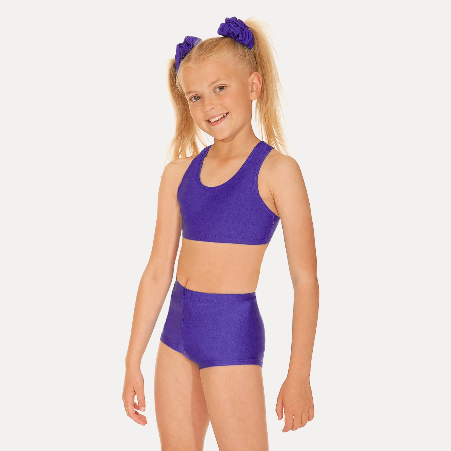 Haut court à encolure arrondie et dos nageur. Convient à divers styles de danse, idéal pour les classes de danse et les spectacles. Ajouter le mini short assorti pour compléter la tenue, voir RVHOT.